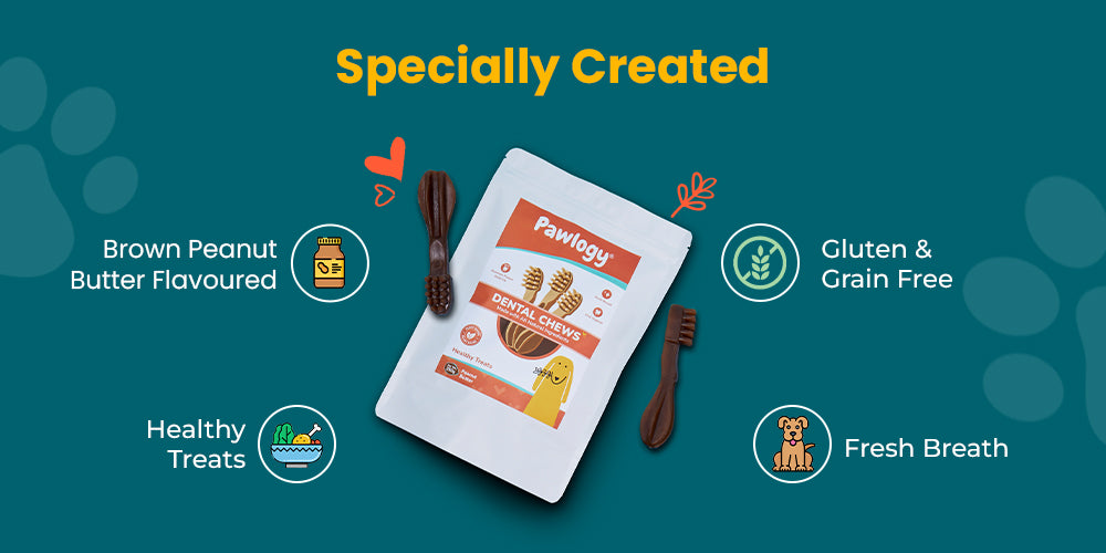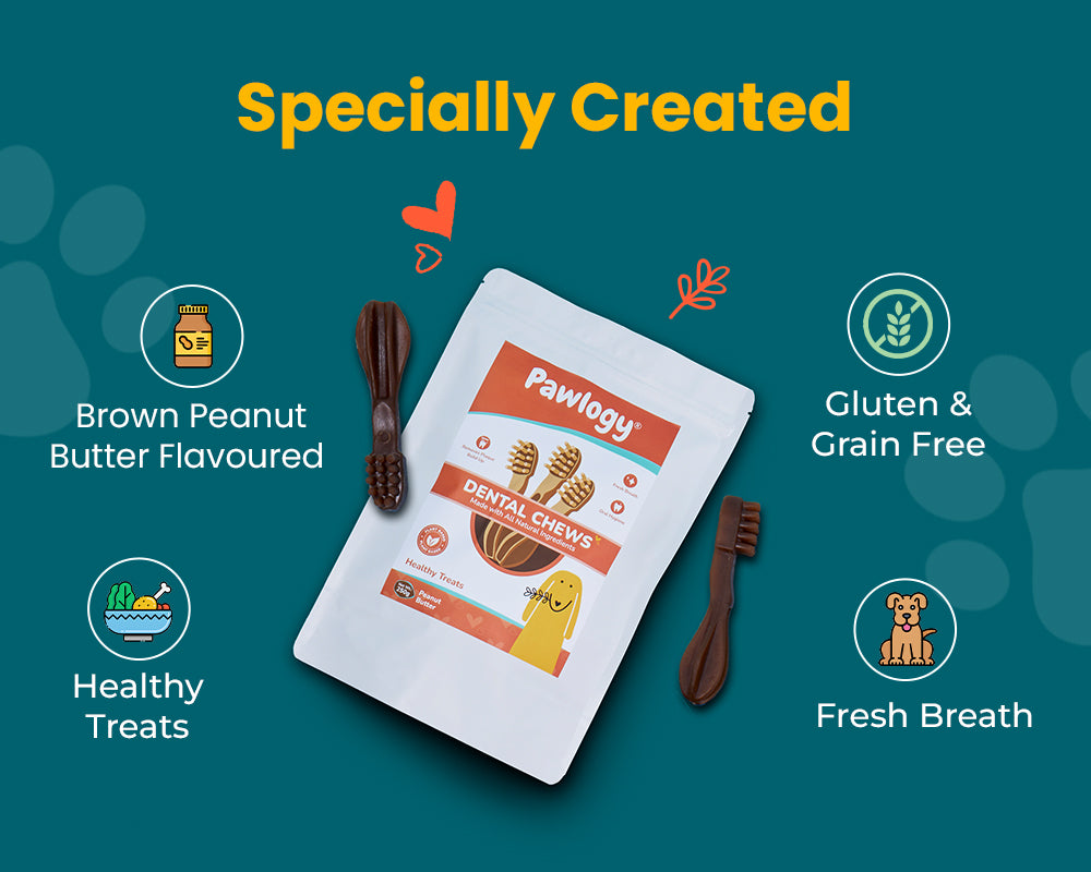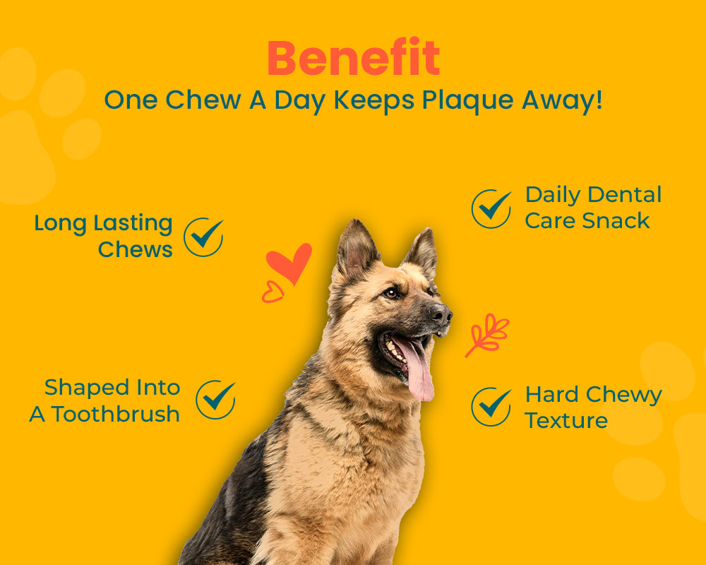 Treat your furry friend to Pawlogy's Dental Chew Sticks! These smart snacks are shaded into a toothbrush design to conveniently zap plaque, fight tartar, freshen breath, and boost digestion. Shaped for easy gripping and long-lasting chewiness, they’re the perfect daily dental delight. One stick a day keeps their smile stronger and those tails wagging!